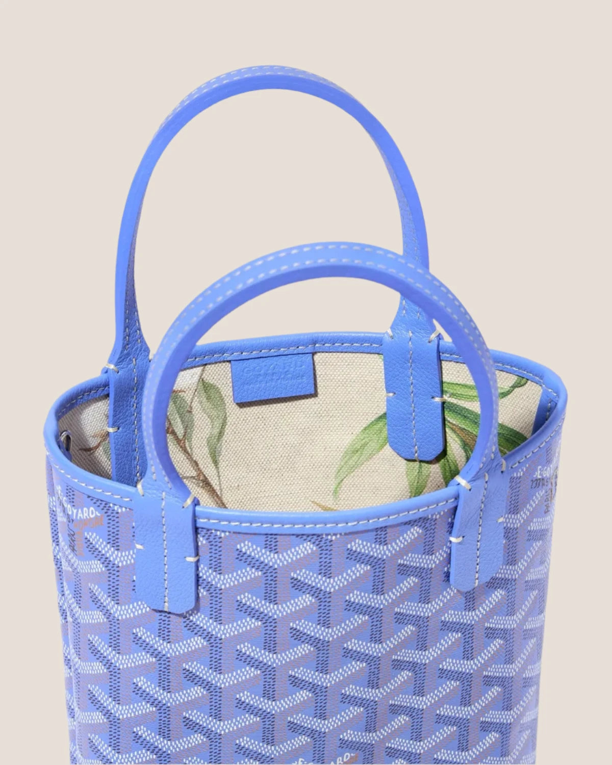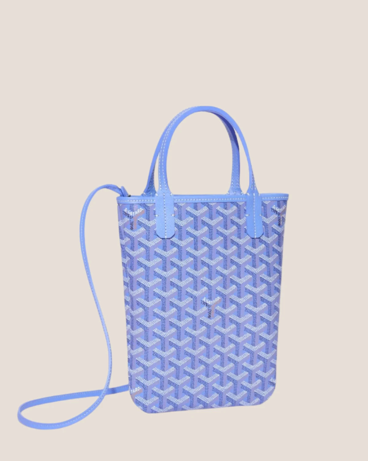 Compact Goyard Poitiers PM in exclusive 2025 Iris Goyardine canvas. This flat mini tote carries essentials with versatile hand or cross-body wear options via removable strap.