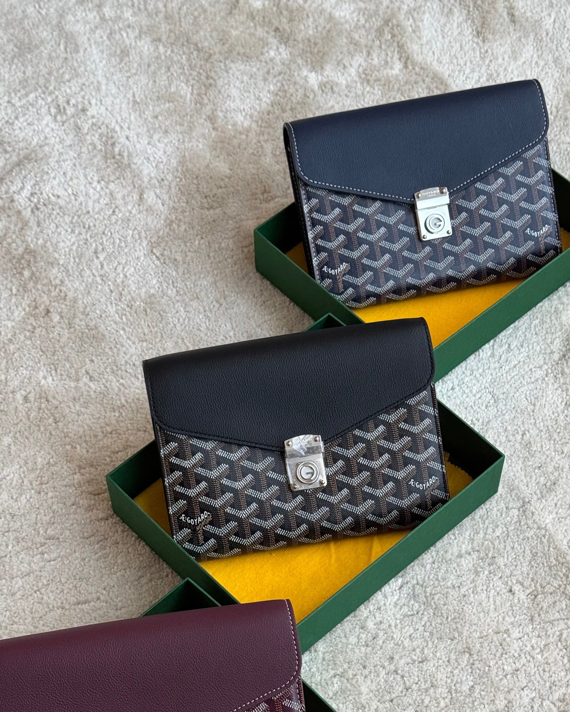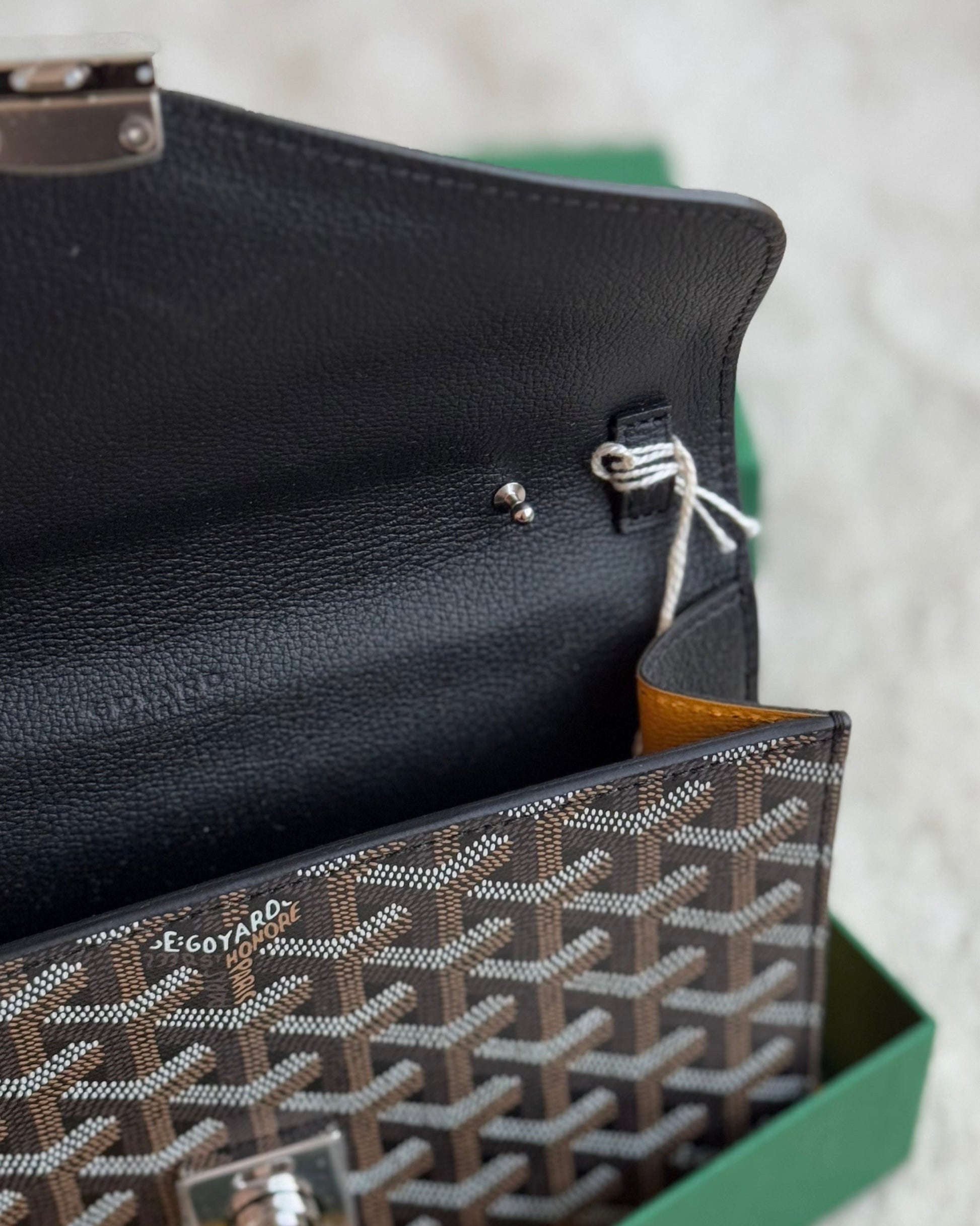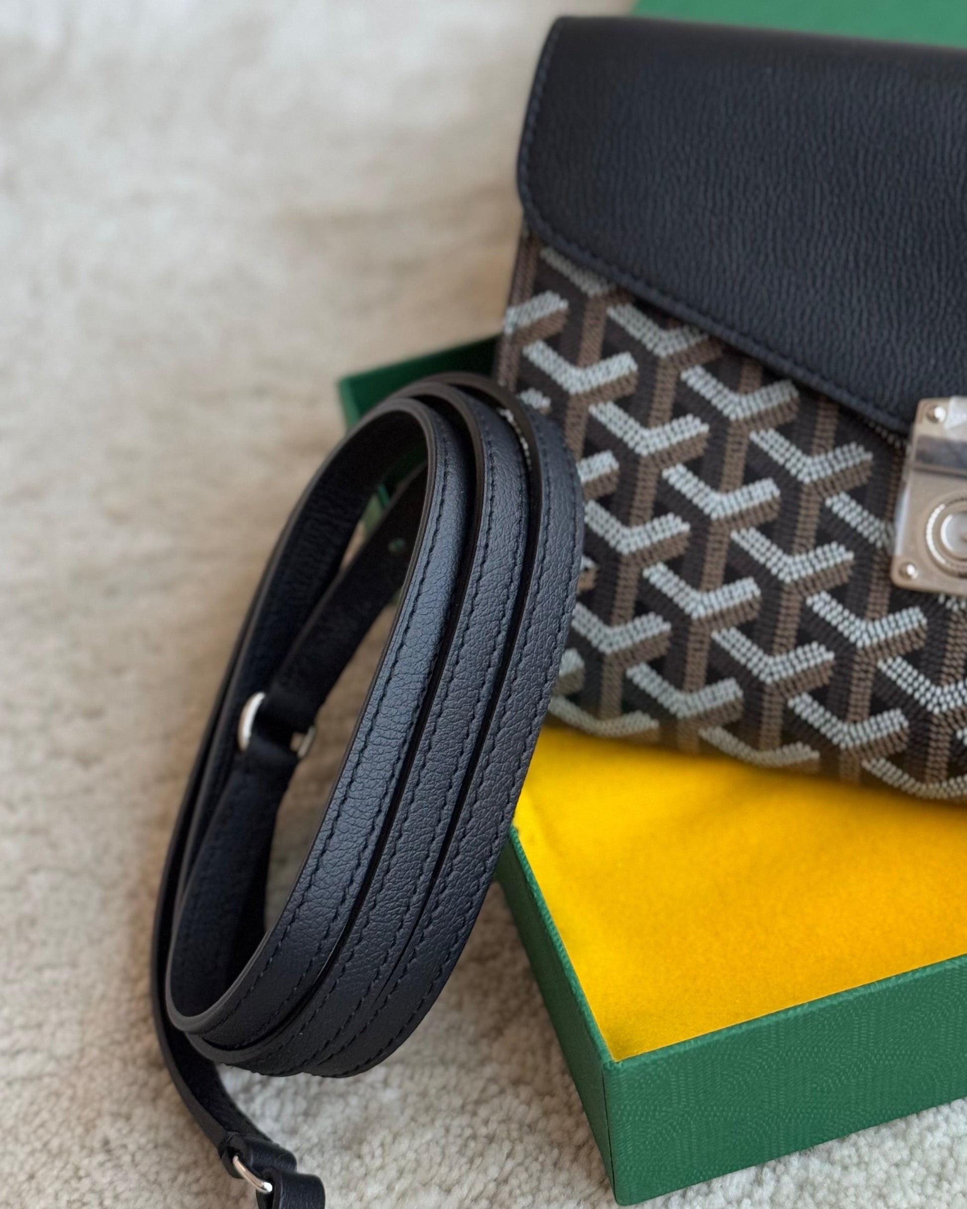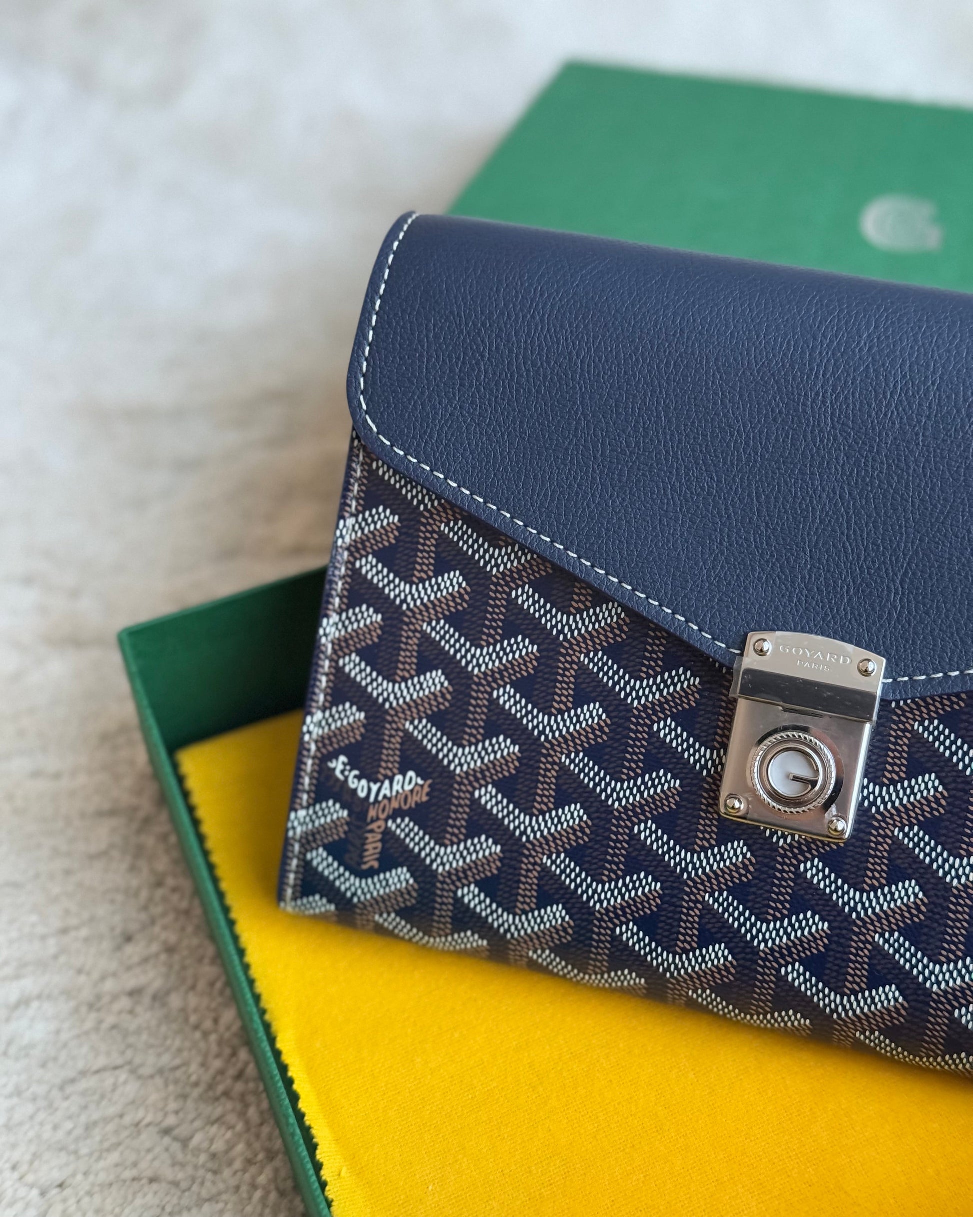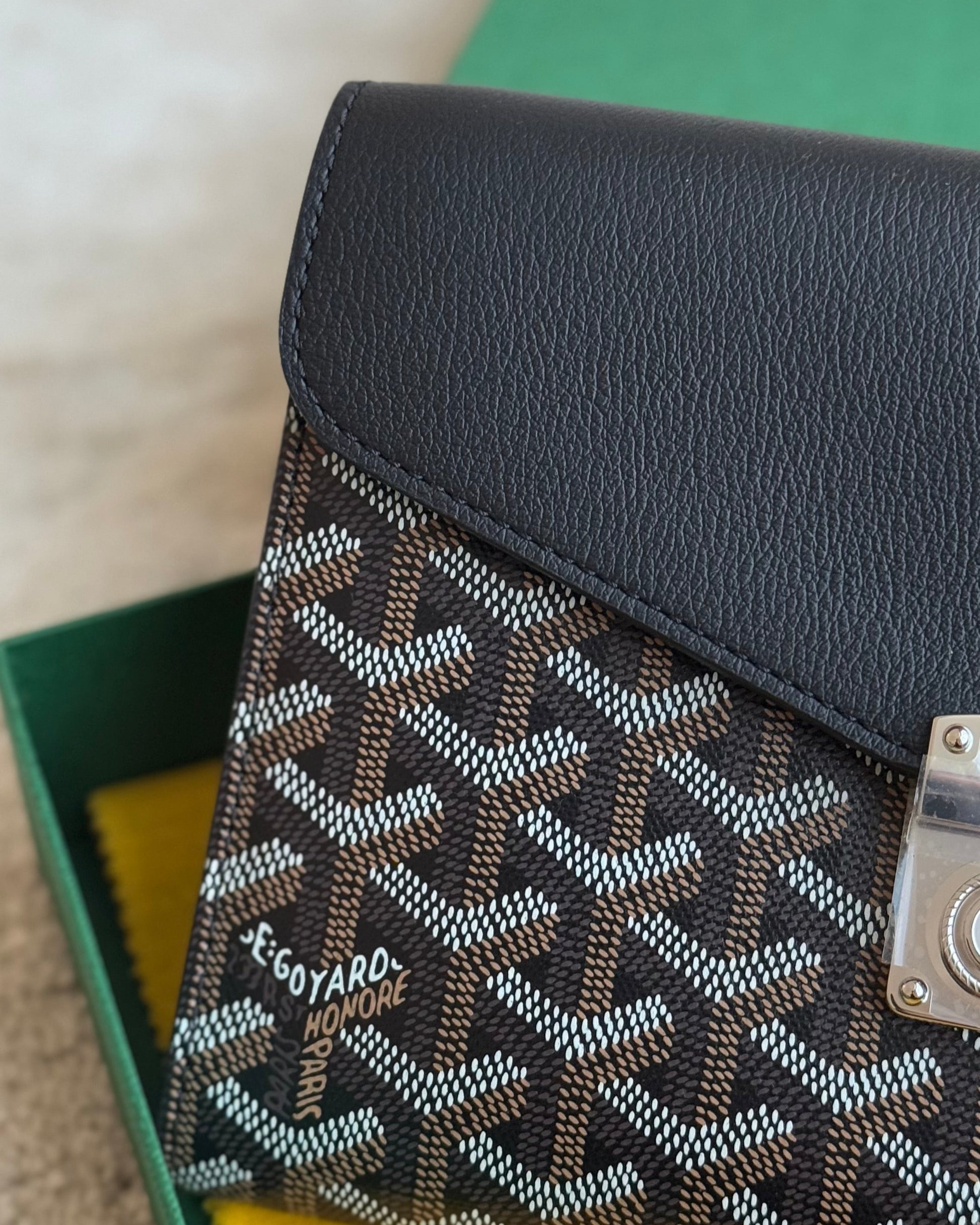 The Pochette Chypre by Goyard is a versatile shoulder bag, evening clutch, or crossbody bag all in one. It features a removable and adjustable strap for your convenience. Elevate any outfit with this chic and functional bag.